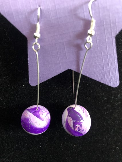 Mottled Purple Polymer Clay Ball Earrings on Silver Wire