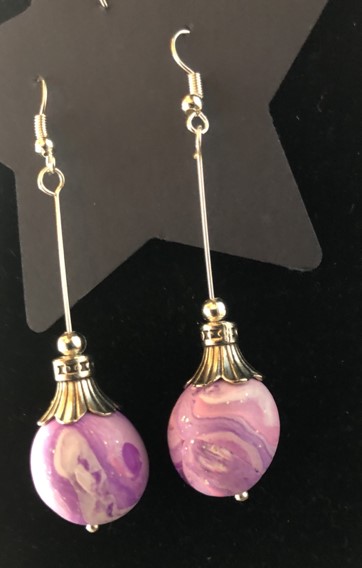 Polymer Clay Ball Earrings with Silver Flower Hats
