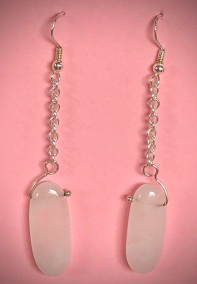 Rose Quartz Lozenge Earrings on Silver Chain on Sterling Silver Wire